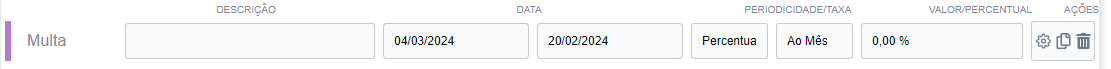 A configuração da multa, permite a seleção de um índice monetário para servir como percentual de multa.