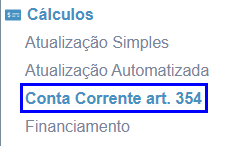 Clique no menu lateral em Conta Corrente art. 354, serão listados todos os cálculos salvos desse módulo: