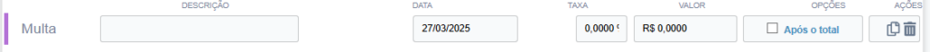 Se marcar essa opção a multa será aplicada após o total do cálculo. Por padrão a multa é aplicada antes do total do Cálculo.Ações