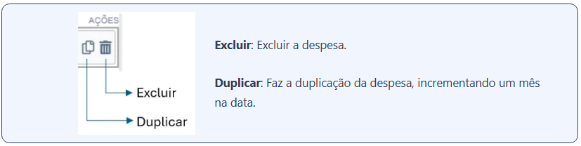 Duplicar: Faz a duplicação da parcela, incrementando um mês na data.