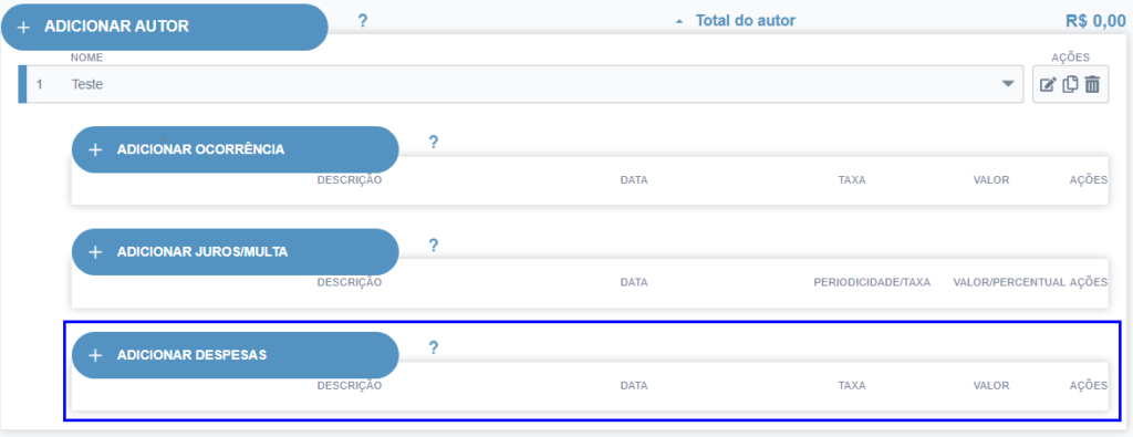 Adiciona uma Despesa (no painel das despesas).