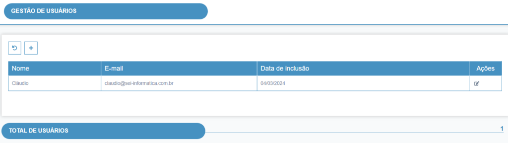 Na tela de gestão de usuários, você verá todas as suas licenças e os dados dos usuários que estiverem associados à cada licença: